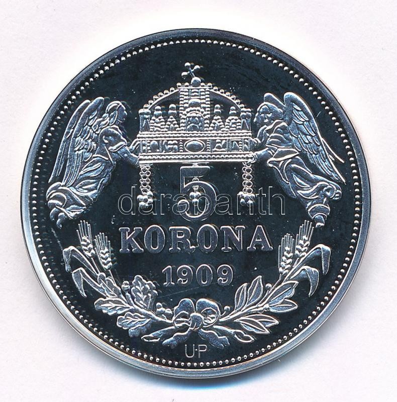 DN "Királyi koronák - II. Géza / 5 korona 1909" Ag emlékérem tanúsítvánnyal (20g/0.999/38,61mm) T:PP patina
