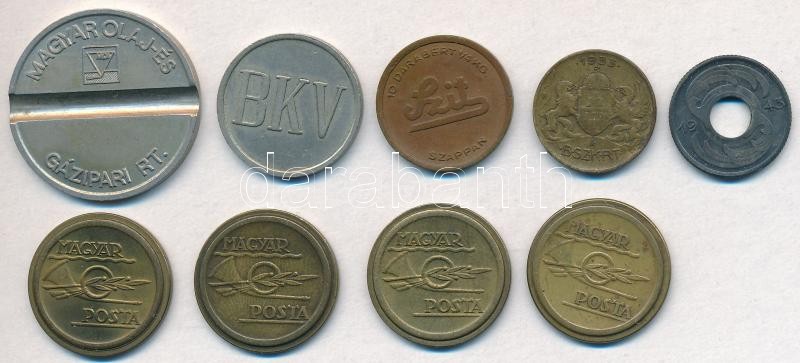 Beschreibung: 9db-os vegyes bárca és zseton tétel, benne DN "Magyar Posta / Telefon Érme", DN "10 darabért Szit Szappan", 1933. "BSZKRT / Kisszakaszjegy", 1943. "BSZKRT - Váltójegy" T:2,2-