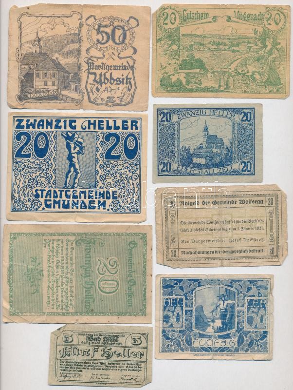 Ausztria 1920. 10-50h (15xklf) utalvány és szükségpénz, többek között Wolfsegg, Eberstallzell, Gmunden, St. Pölten és Ybbsitz T:III,III- Austria 1920. 10-50 Heller (15xdiff) vouchers and necessity notes, with notes from Wolfsegg, Eberstallzell, Gmunden, St. Pölten and Ybbsitz C:F,VG