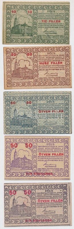 Beschreibung: Pécs 1919. 10f-50f (5x) házipénztár-pénztárjegy T:II,III