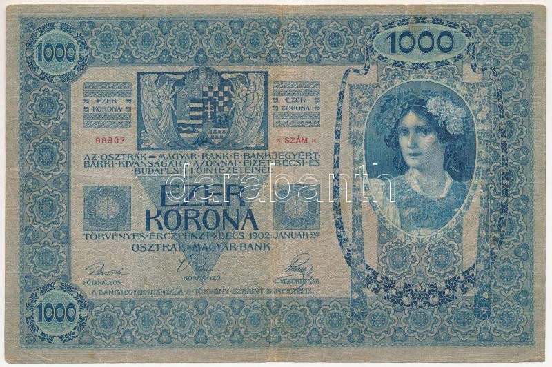 Adamo SK35 https://www.darabanth.com/de/403-Fernauktion/403.0/Numismatik/Ungarische-Banknoten~2500007/1902-1000K-belyegzes-nelkul-TIII-Adamo-SK35~II2485996