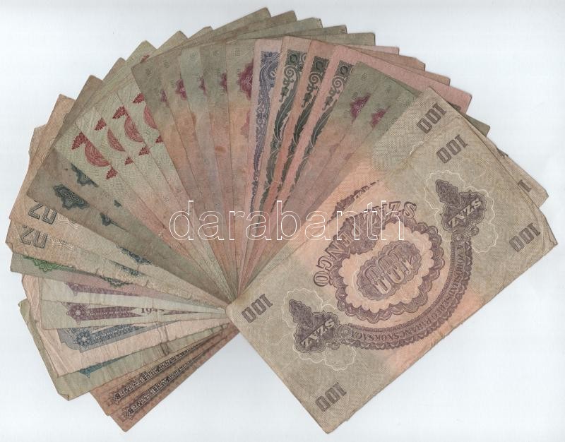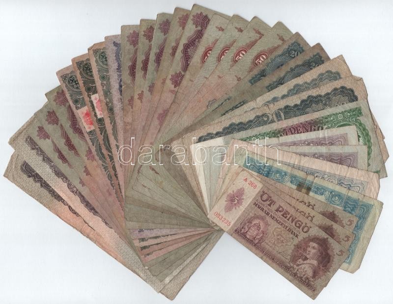 1930-1945. 5P-1000P (30db) T:III,III- https://www.darabanth.com/de/403-Fernauktion/403.0/Numismatik/Ungarische-Banknoten~2500007/1930-1945-5P-1000P-30db-TIII-III-~II2473030