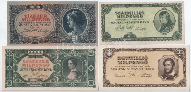 1946. 10.000MP - 10.000.000BP (8xklf) T:II-III https://www.darabanth.com/de/403-Fernauktion/403.0/Numismatik/Ungarische-Banknoten~2500007/1946-10000MP-10000000BP-8xklf-TII-III~II2478984