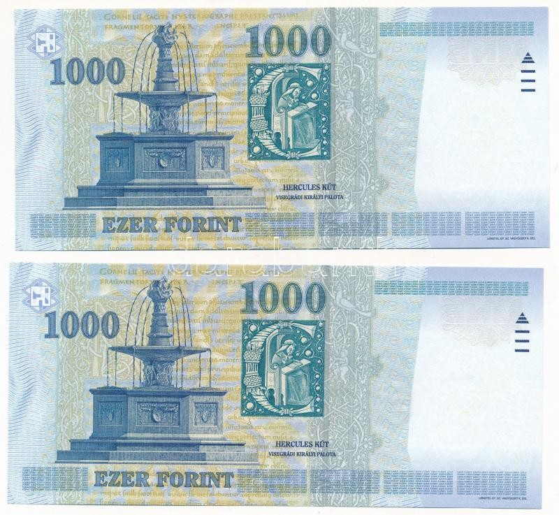 Beschreibung: 2000. 1000Ft (2x, sorszámkövetők "DB 3088196 - DB 3088197" "Millennium") T:I,I- Adamo F55B2
