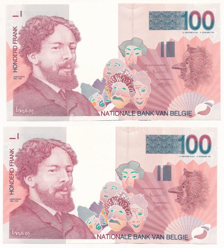 Belgium 1995. 100Fr (2x) sorszámkövetők "21702099867 - 2170209986... https://www.darabanth.com/de/403-Fernauktion/403.0/Numismatik/Weltweit-Banknoten~2500013/Belgium-1995-100Fr-2x-sorszamkovetok-21702099867-21702099868-TI--Belgium-1995-100-Franc~II2478773