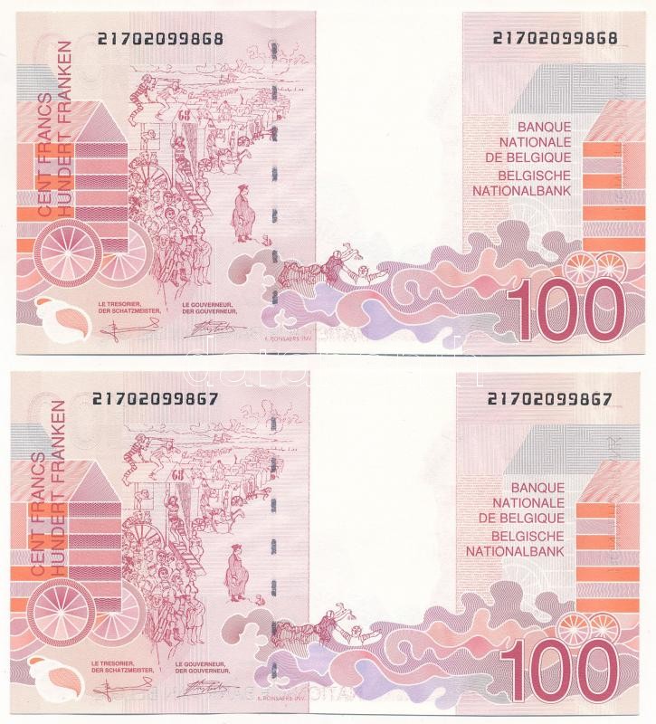 Beschreibung: Belgium 1995. 100Fr (2x) sorszámkövetők "21702099867 - 21702099868" T:I
