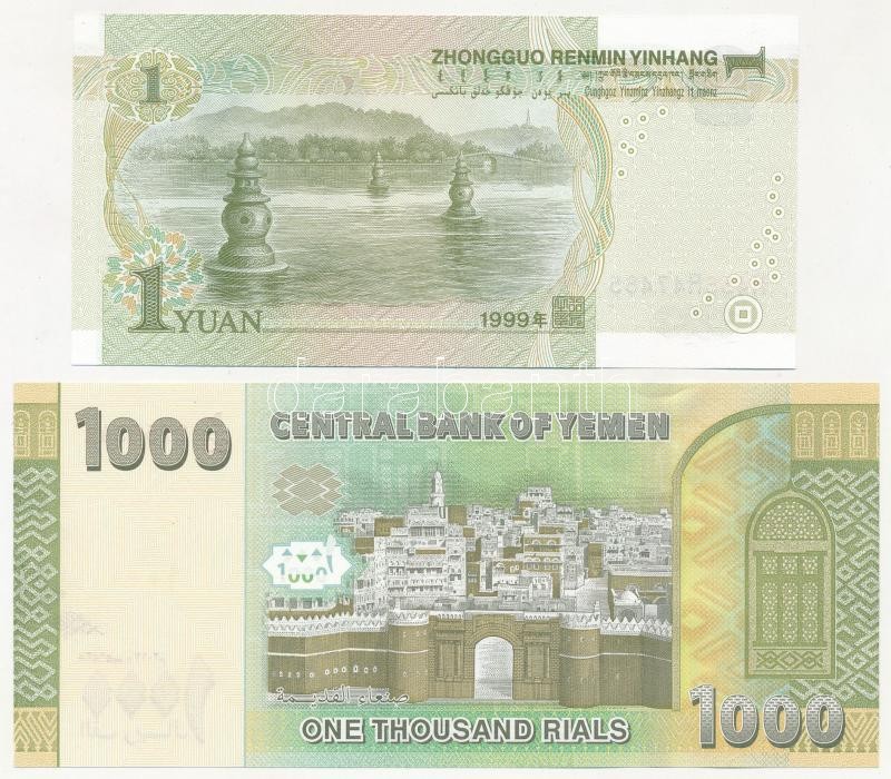 China 1999. 1 Yuan + Yemen 2017... https://www.darabanth.com/de/403-Fernauktion/403.0/Numismatik/Weltweit-Banknoten~2500013/Kina-1999-1Y-plus-Jemen-2017-1000R-TI-China-1999-1-Yuan-plus-Yemen-2017-1000-Rials-CUNC--Krause-P~II2416267