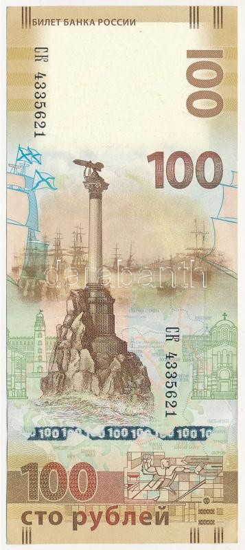 Russia 2015. 100 Rubles... https://www.darabanth.com/de/403-Fernauktion/403.0/Numismatik/Weltweit-Banknoten~2500013/Oroszorszag-2015-100R-Krimi-emlekkiadas-TII-Russia-2015-100-Rubles-Crimean-Commemorative-Iss~II2476500