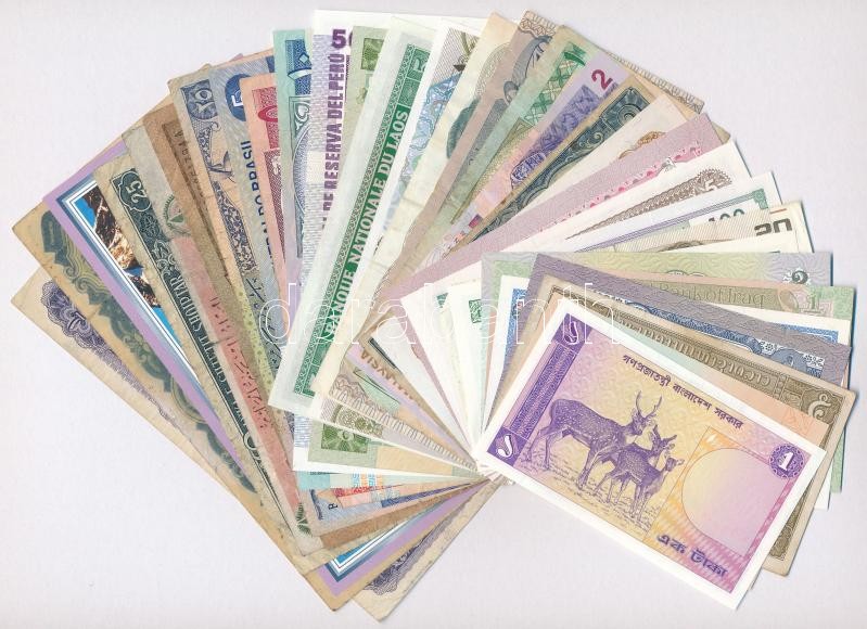 Beschreibung: Vegyes 33db-os bankjegy tétel a világ minden tájáról, mind különféle, közte 17db hajtatlan bankjegy T:I-III