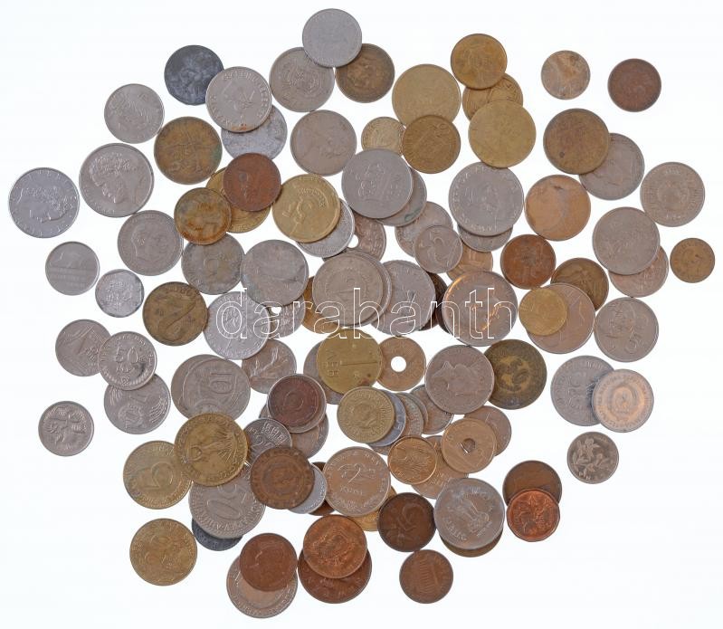 110db-os, főleg külföldi érmetétel dobozban, közte India, Spanyolország, Portugália, Görögország, Amerikai Egyesült Államok, Horvátország, Olaszország, Izrael, Thaiföld T:vegyes 110pcs, mostly foreign coin lot in box, within India, Spain, Portugal, Greece, USA, Croatia, Italy, Israel, Thailand C:mixed