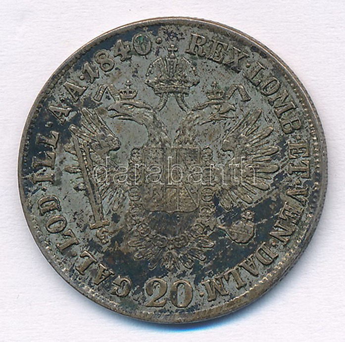 Ausztria 1840A 20kr Ag "I. Ferdinánd" T:2 patina Austria 1840A 20 Kreuzer Ag "Ferdinand I" C:XF patina Krause KM# 2208