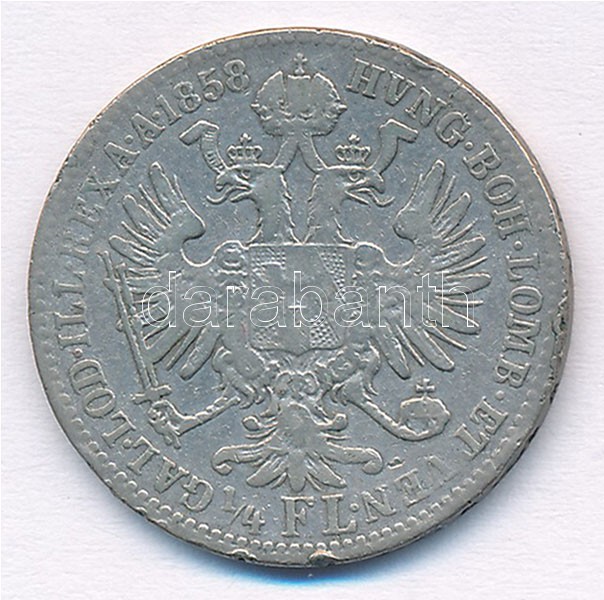 Ausztria 1858A 1/4Fl Ag "Ferenc József" T:2-,3 ph. Austria 1858A 1/4 Florin Ag "Franz Joseph" C:VF,F edge error Krause KM#2214