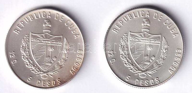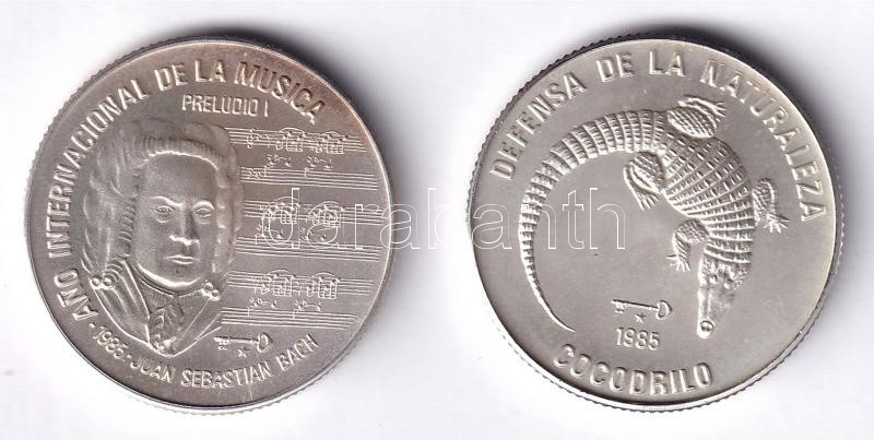 Cuba 1985. 5 Pesos Ag "Cocodrilo" + 1985. 5 Pesos Ag "Johann Sebastian Bach" C:UNC patina