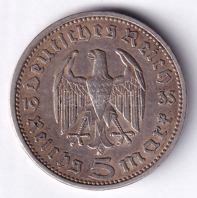 Német Harmadik Birodalom 1935A 5M Ag "Hindenburg" T:2,2- pat... https://www.darabanth.com/de/403-Fernauktion/403.0/Numismatik/Weltweit-Munzen~2500014/Nemet-Harmadik-Birodalom-1935A-5M-Ag-Hindenburg-T2-2-patina-German-Third-Empire-1935A-5-Reichsm~II2483503