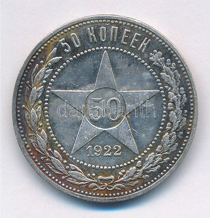 Soviet Union 1922. 50 Kopecks ... https://www.darabanth.com/de/403-Fernauktion/403.0/Numismatik/Weltweit-Munzen~2500014/Szovjetunio-1922-50k-Ag-T2-2-patina-Soviet-Union-1922-50-Kopecks-Ag-CXF-VF-patina-Krause-Y238~II2326746