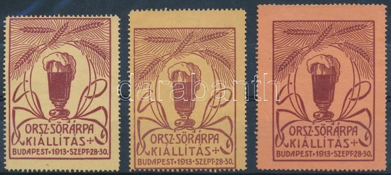 Beschreibung: 1913 Orsz. Sörárpa kiállítás 3 db levélzáró