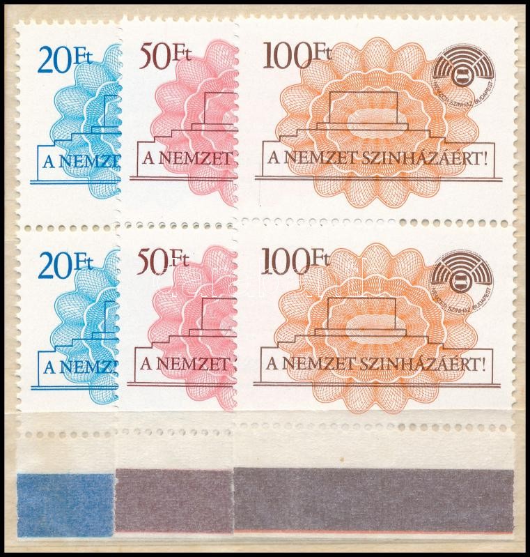 A nemzet színházáért 3 klf adománybélyeg ívszéli párokban https://www.darabanth.com/de/403-Fernauktion/403.0/Philatelie-und-Postgeschichte-Ungarn/Paraphilatelie~500016/A-nemzet-szinhazaert-3-klf-adomanybelyeg-ivszeli-parokban~II2477975
