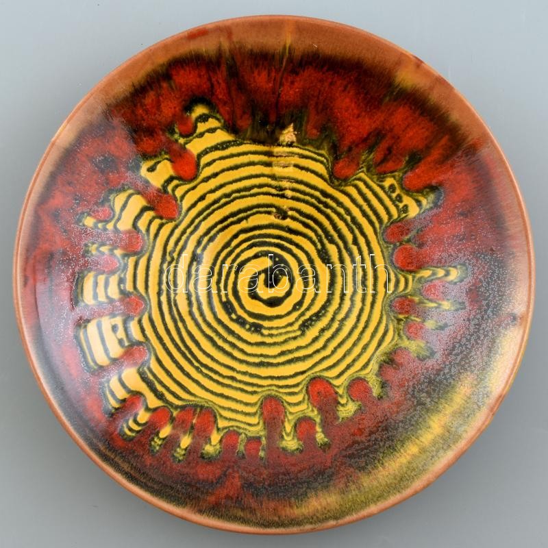 Beschreibung: Nagy jelzéssel mázas kerámia fali tál, kis kopásnyomokkal, d: 27,5 cm