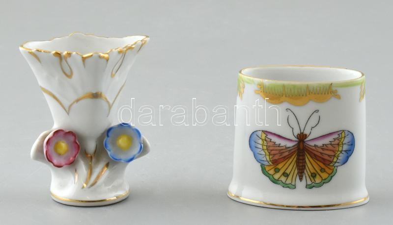 Beschreibung: 2 db Herendi porcelán kis csokor, fogpiszkáló tartó. Kézzel festett,jelzett, minimális kopással m: 5,5 cm, 7 cm