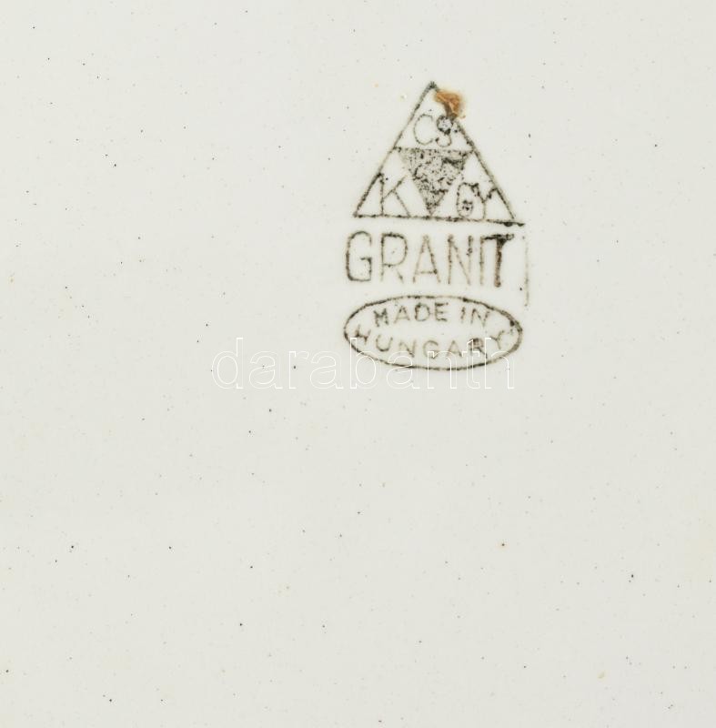 Gránit virágmintás porcelán naqyméretű tányér, matricás, jelzett, kis kopásokkal, d: 35 cm + porcelán sótartó és szószos kiöntő, matricás, kopásokkal, 6,5x9 cm, 12x20,5 cm