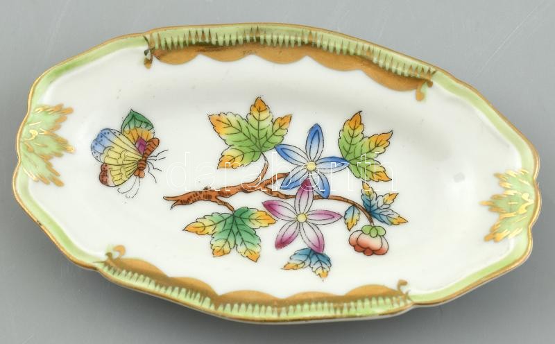 Beschreibung: Herendi Viktória mintás porcelán tálka. Kézzel festett, jelzett, hibátlan 10x6,5 cm