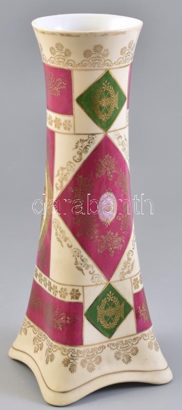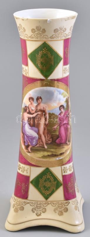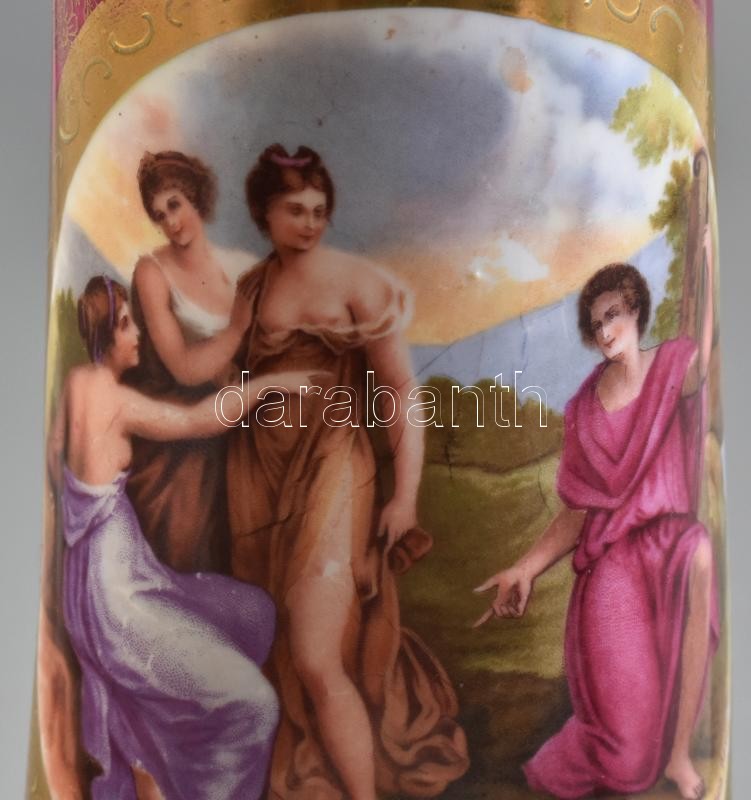 Beschreibung: Páris választása. Antik jelenettel díszített jelzett, régi csehszlovák porcelán váza. Részben kézzel festett, kopásokkal. 30 cm