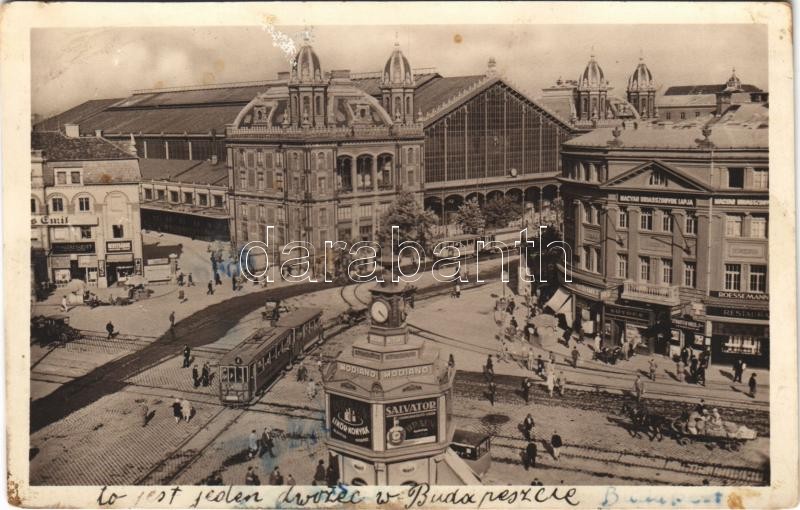 1935 Budapest VI. Nyugati pályaudvar, vasútállomás, villamosok, üzlete... https://www.darabanth.com/de/404-Fernauktion/404.0/Ansichtskarten/Ungarn~1500004/1935-Budapest-VI-Nyugati-palyaudvar-vasutallomas-villamosok-uzletek-reklamok-fl~II2495049
