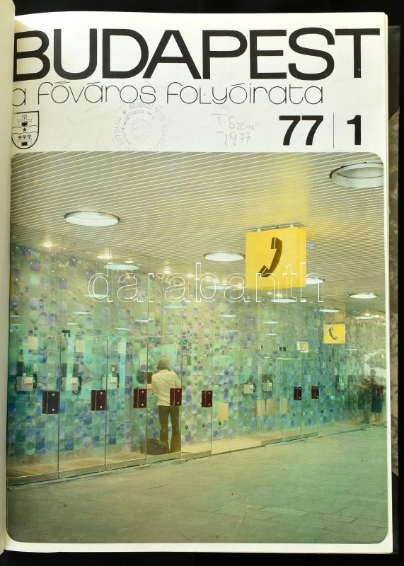 1977 Budapest, a főváros folyóirata teljes XV. évfolyama egybekötve, 1977. jan.-dec., szerk.: Mesterházi Lajos, gazdag képanyaggal illusztrálva, helyenként kissé sérült lapszélekkel, egy lapon hiánnyal, félvászon-kötésben