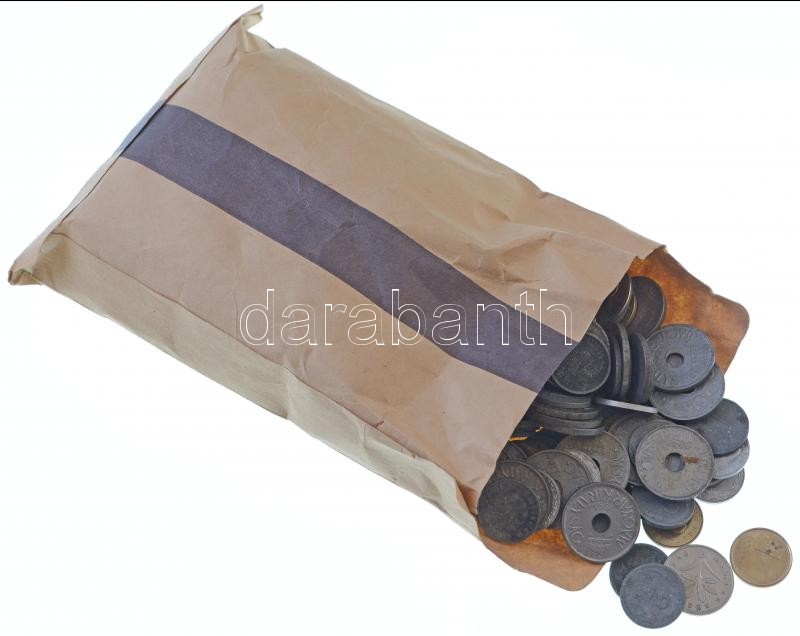 Magyar fémpénz tétel ~1Kg-os súlyban (főleg az 1940-1944. közötti időszak Fillér érméi) "Országos Takarékbank - 200 Forint, 20 darab 10 Forintos" papírzacskóban, a zacskó bélyegzés nélkül T:vegyes