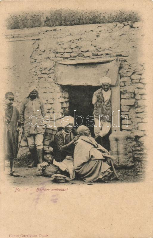 Barbier ambulant / street barber shop, Tunisian folklore (EK) https://www.darabanth.com/de/405-Fernauktion/405.0/Ansichtskarten/Folklore~1000069/Barbier-ambulant-street-barber-shop-Tunisian-folklore-EK~II1216869