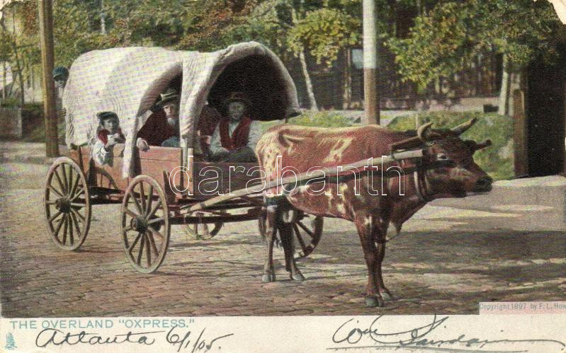 The Overland Oxpress, cart, American folklore (EK) https://www.darabanth.com/de/405-Fernauktion/405.0/Ansichtskarten/Folklore~1000069/The-Overland-Oxpress-cart-American-folklore-EK~II1216975
