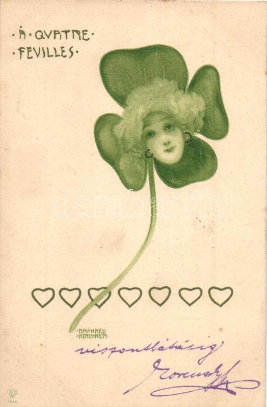 1900 A quattre fevilles;, B.S.W. 1046. litho s: Raphael Kirchner https://www.darabanth.com/de/405-Fernauktion/405.0/Ansichtskarten/Kunstlerkarten~1000085/1900-A-quattre-fevilles-BSW-1046-litho-s-Raphael-Kirchner~II1693129
