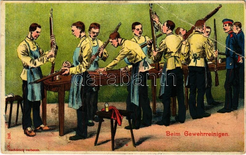 1910 Beim Gewehrreinigen / German military art postcard, soldiers clea... https://www.darabanth.com/de/405-Fernauktion/405.0/Ansichtskarten/Militaria~1000079/1910-Beim-Gewehrreinigen-German-military-art-postcard-soldiers-cleaning-rifles-Verlag-Fr-Ch-He~II2497424