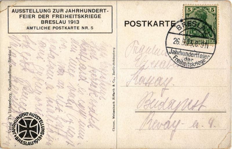 1913 Die lieben Waffen glänzen... Ausstellung zur Jahrhundertfeier der Freiheitskriege Breslau. Amtliche Postkarte Nr. 5. / Exhibition of the 100th anniversary of the Wars of Liberation 1813-1814 in Wroclaw s: Martin Wiegand + So. Stpl. (EB)