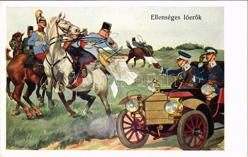 Beschreibung: Ellenséges lóerők / Austro-Hungarian K.u.K. military art postcard, humour. B.K.W.I. 880-8. s: Schönpflug