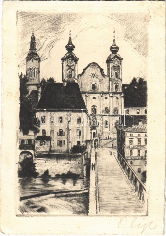 Beschreibung: 1945 Steyr, St. Michaelerkirche und Ex-Spitalkirche / church and former hospital church (fa)