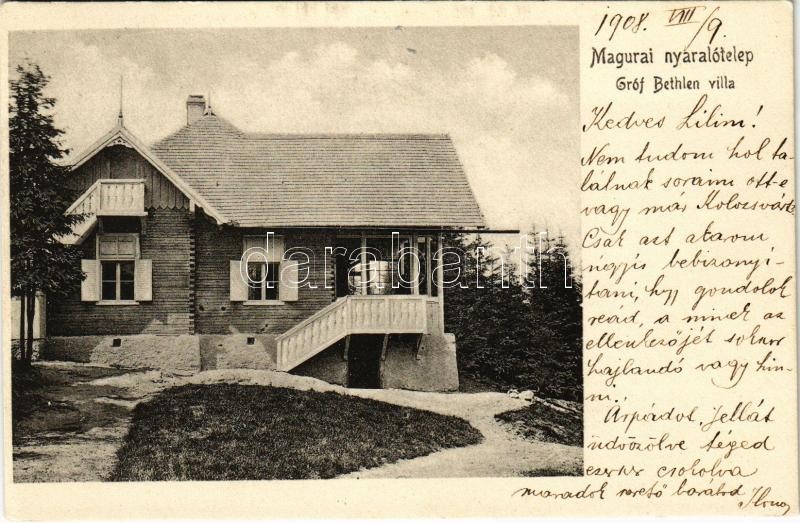 1908 Magura, nyaralótelep, Gróf Bethlen villa / villa https://www.darabanth.com/de/405-Fernauktion/405.0/Ansichtskarten/Siebenburgen~1000002/1908-Magura-nyaralotelep-Grof-Bethlen-villa-villa~II2502165