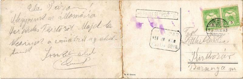 Beschreibung: 1914 Ada Kaleh, török sziget Orsova alatt. kihajtható panorámalap / Turkish island. folding panoramacard (hajtásnál szakadt / torn at fold)
