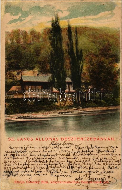 1901 Besztercebánya, Banská Bystrica; Garam részlet, Szent János (Szentjános) vasútállomás. Ivánszky Elek kiadása / Bahnhof / Hron riverside, railway station Banská Bystrica mesto (r)