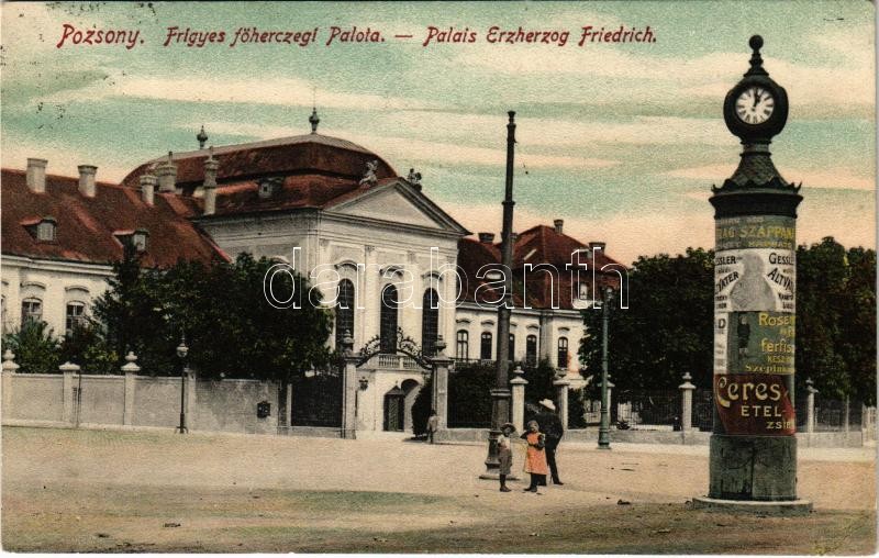 1937 Pozsony, Pressburg, Bratislava; Frigyes főherceg palota, hirdetőo... https://www.darabanth.com/de/405-Fernauktion/405.0/Ansichtskarten/Slowakei~1000003/1937-Pozsony-Pressburg-Bratislava-Frigyes-foherceg-palota-hirdetooszlop-palace-advertising-~II2503105