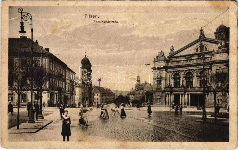Plzen, Pilsen; Ferdinandstrasse / street, synagogue (EK) https://www.darabanth.com/de/405-Fernauktion/405.0/Ansichtskarten/Tschechische-Republik~1000024/Plzen-Pilsen-Ferdinandstrasse-street-synagogue-EK~II2500720