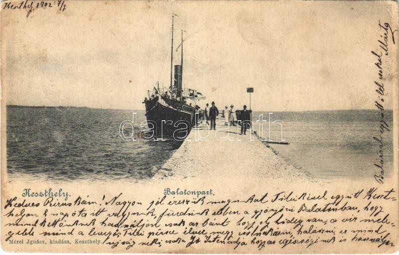1902 Keszthely, Balaton part, gőzös. Mérei Ignác kiadása (EK) https://www.darabanth.com/de/405-Fernauktion/405.0/Ansichtskarten/Ungarn~1000001/1902-Keszthely-Balaton-part-gozos-Merei-Ignac-kiadasa-EK~II2442660