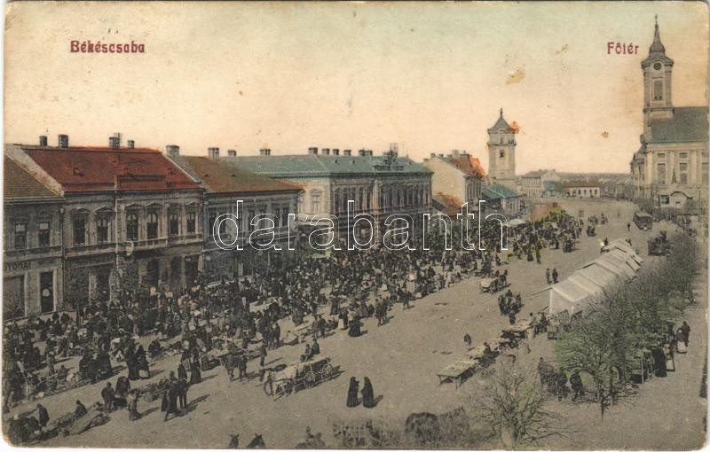 1912 Békéscsaba, Fő tér, piac, üzletek (ragasztónyom / gluemark) https://www.darabanth.com/de/405-Fernauktion/405.0/Ansichtskarten/Ungarn~1000001/1912-Bekescsaba-Fo-ter-piac-uzletek-ragasztonyom-gluemark~II2475765