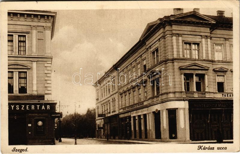 1936 Szeged, Kárász utca, gyógyszertár, Kereskedelmi és Iparbank, Taka... https://www.darabanth.com/de/405-Fernauktion/405.0/Ansichtskarten/Ungarn~1000001/1936-Szeged-Karasz-utca-gyogyszertar-Kereskedelmi-es-Iparbank-Takarekpenztar-Winternitz~II2500099