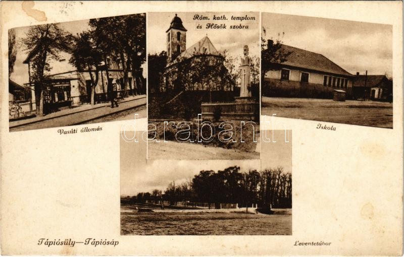Beschreibung: 1939 Tápiósüly-Tápiósáp (Sülysáp), vasútállomás, Római katolikus templom, Hősök szobra, iskola, Leventetábor (fl)
