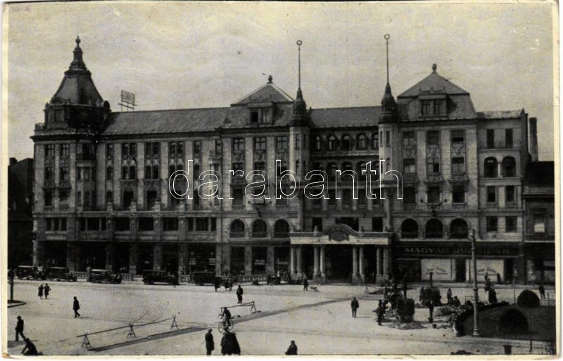 Beschreibung: 1940 Debrecen, Arany Bika szálloda, automobilok. Löbl Dávid és Fia kiadása (vágott / cut)