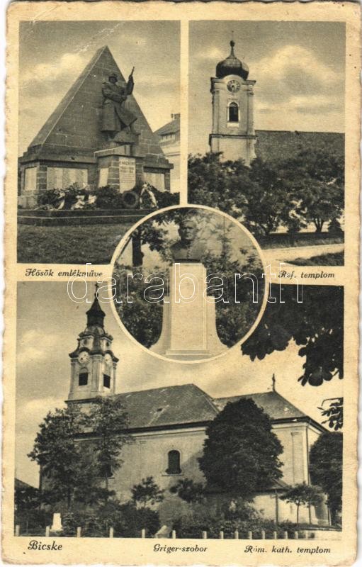 1943 Bicske, Hősök emlékműve, Református és római katolikus templom, G... https://www.darabanth.com/de/405-Fernauktion/405.0/Ansichtskarten/Ungarn~1000001/1943-Bicske-Hosok-emlekmuve-Reformatus-es-romai-katolikus-templom-Griger-szobor-EB~II2450908
