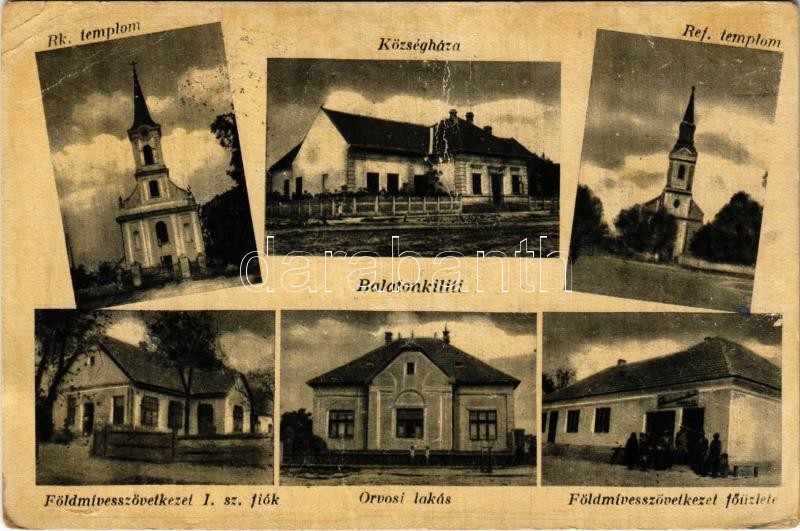 Beschreibung: Balatonkiliti, Kiliti, Somogykiliti (Siófok); Római katolikus és református templom, Községháza, Földmívesszövetkezet I. sz. fiók és főüzlete (EK)