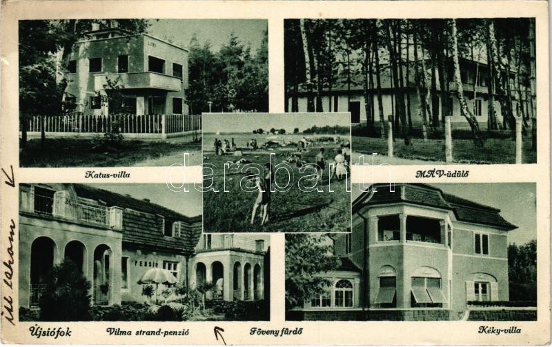 Siófok, Újsiófok, MÁV üdülő, Kéky és Katus villa, Vilma strand penzió,... https://www.darabanth.com/de/405-Fernauktion/405.0/Ansichtskarten/Ungarn~1000001/Siofok-Ujsiofok-MAV-udulo-Keky-es-Katus-villa-Vilma-strand-penzio-foveny-furdo~II2501538