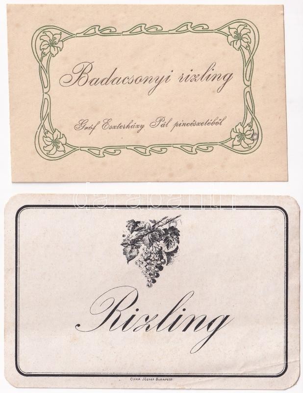 Beschreibung: 2 db RÉGI magyar bor reklámlap: Badacsonyi rizling Gróf Esterházy Pál pincészetéből / 2 pre-1945 Hungarian wine advertisement cards (non PC)